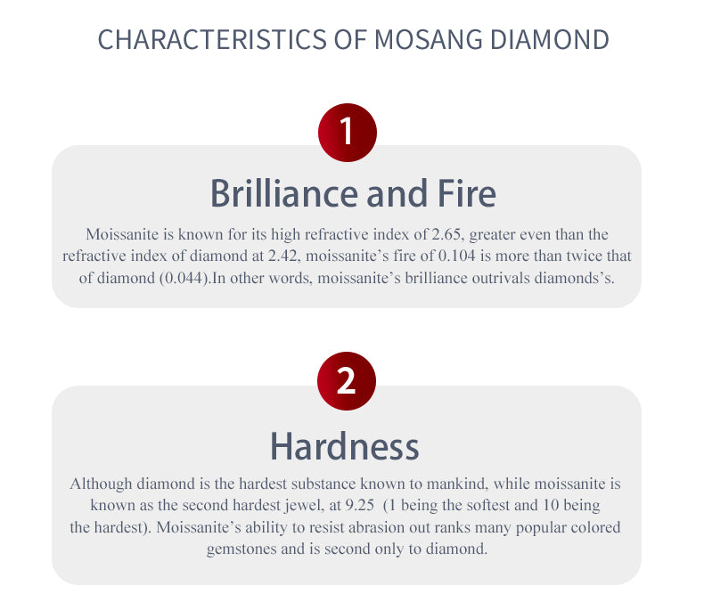 SHINY FOREVER: Moissanite is the most beautiful jewel in the world with more brilliance, fire, and luster than any other jewel.